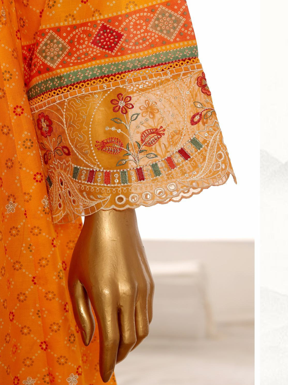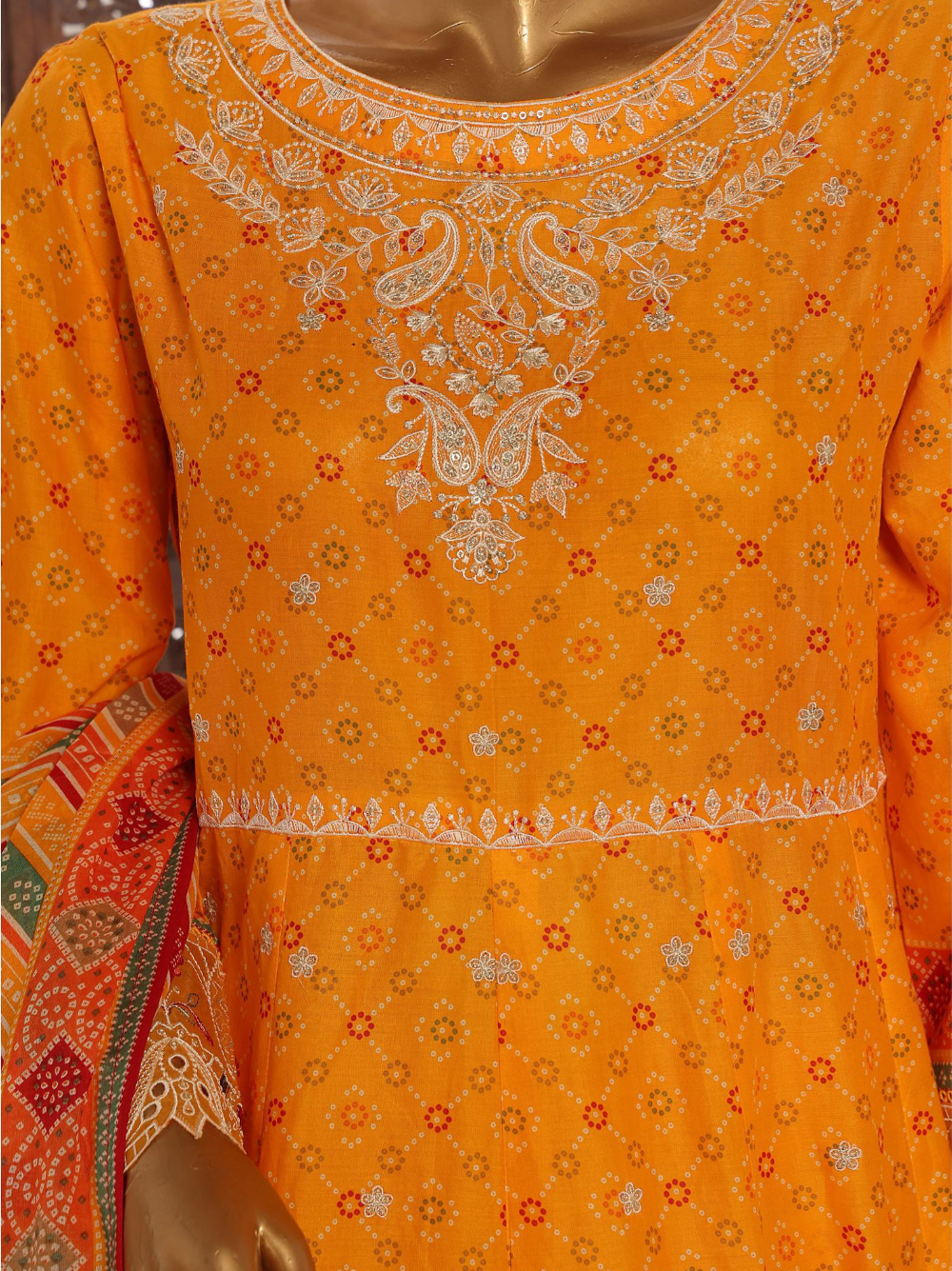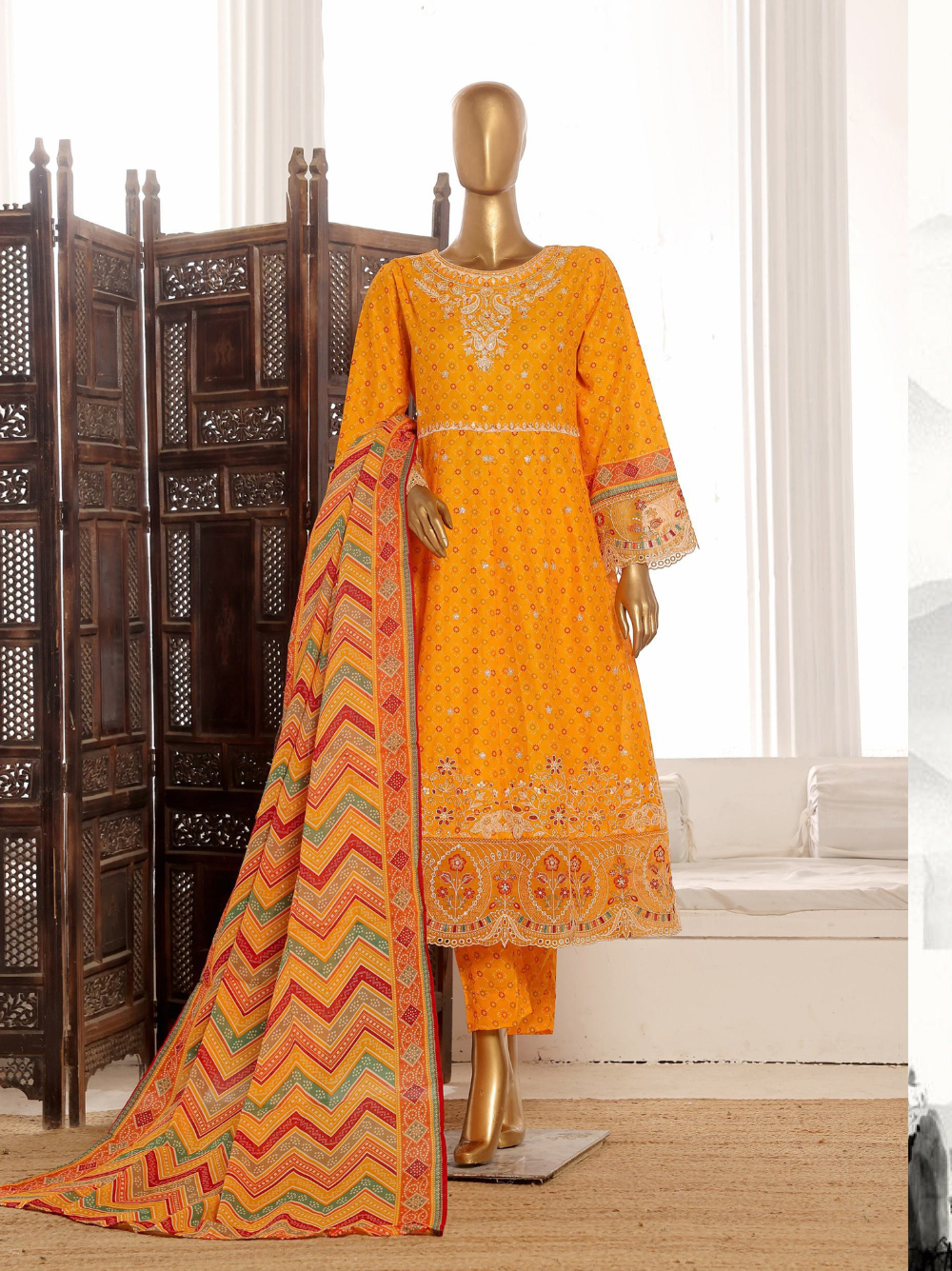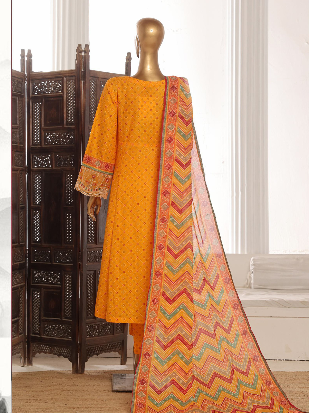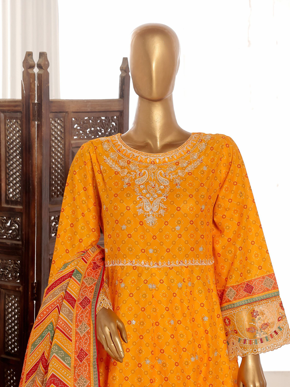 - Elegant 3 Piece Marigold Orange Color Embroidered Lawn Frock Style Suit 🌼✨