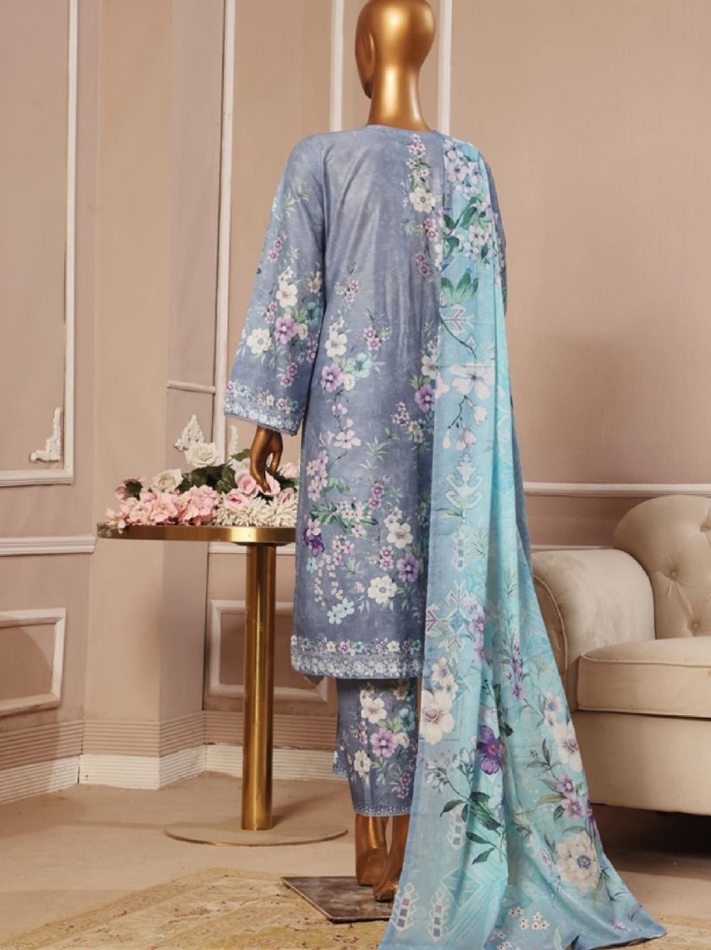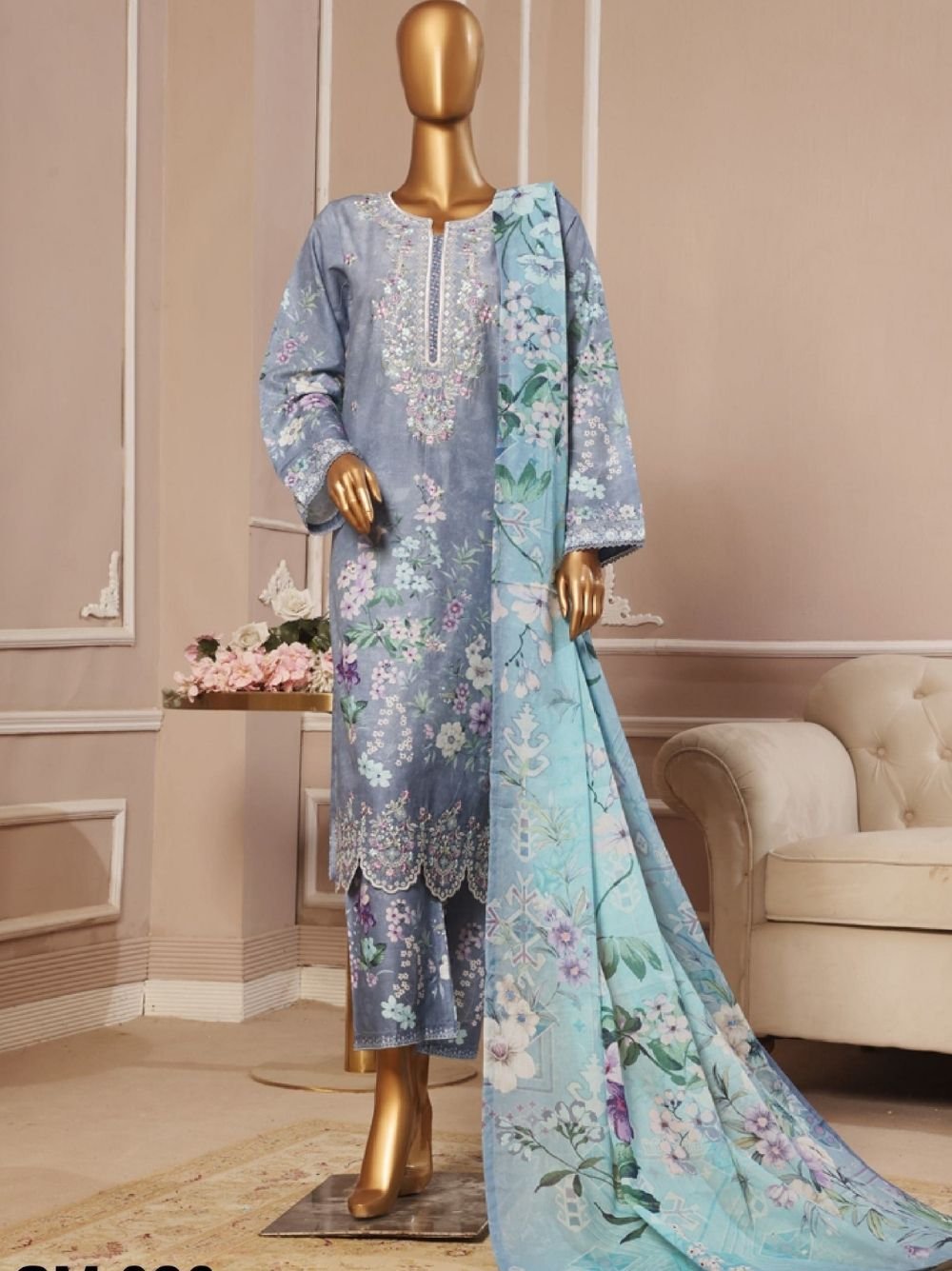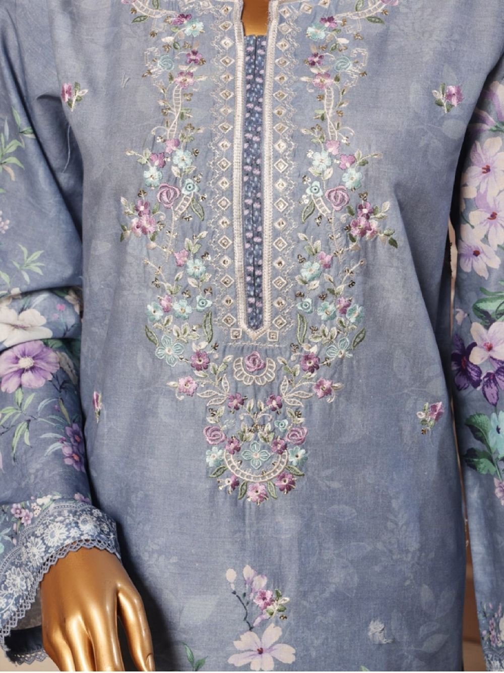 Exude elegance with this steel blue embroidered lawn stitched suit, paired with a graceful lawn dupatta and classic plain trousers. A perfect blend of style and sophistication! 💙
