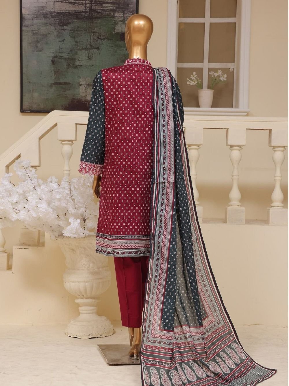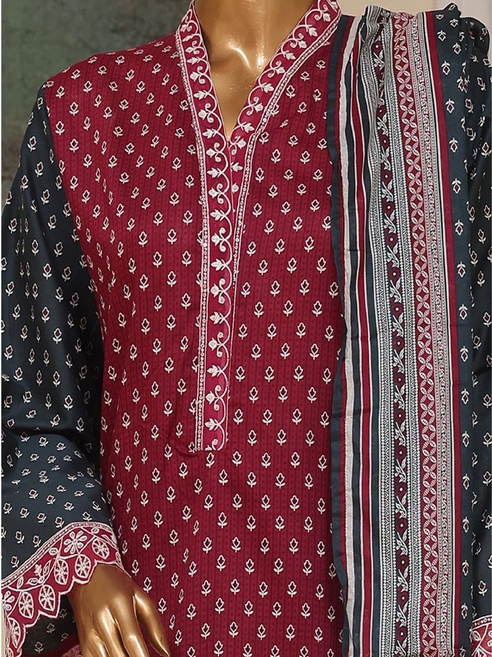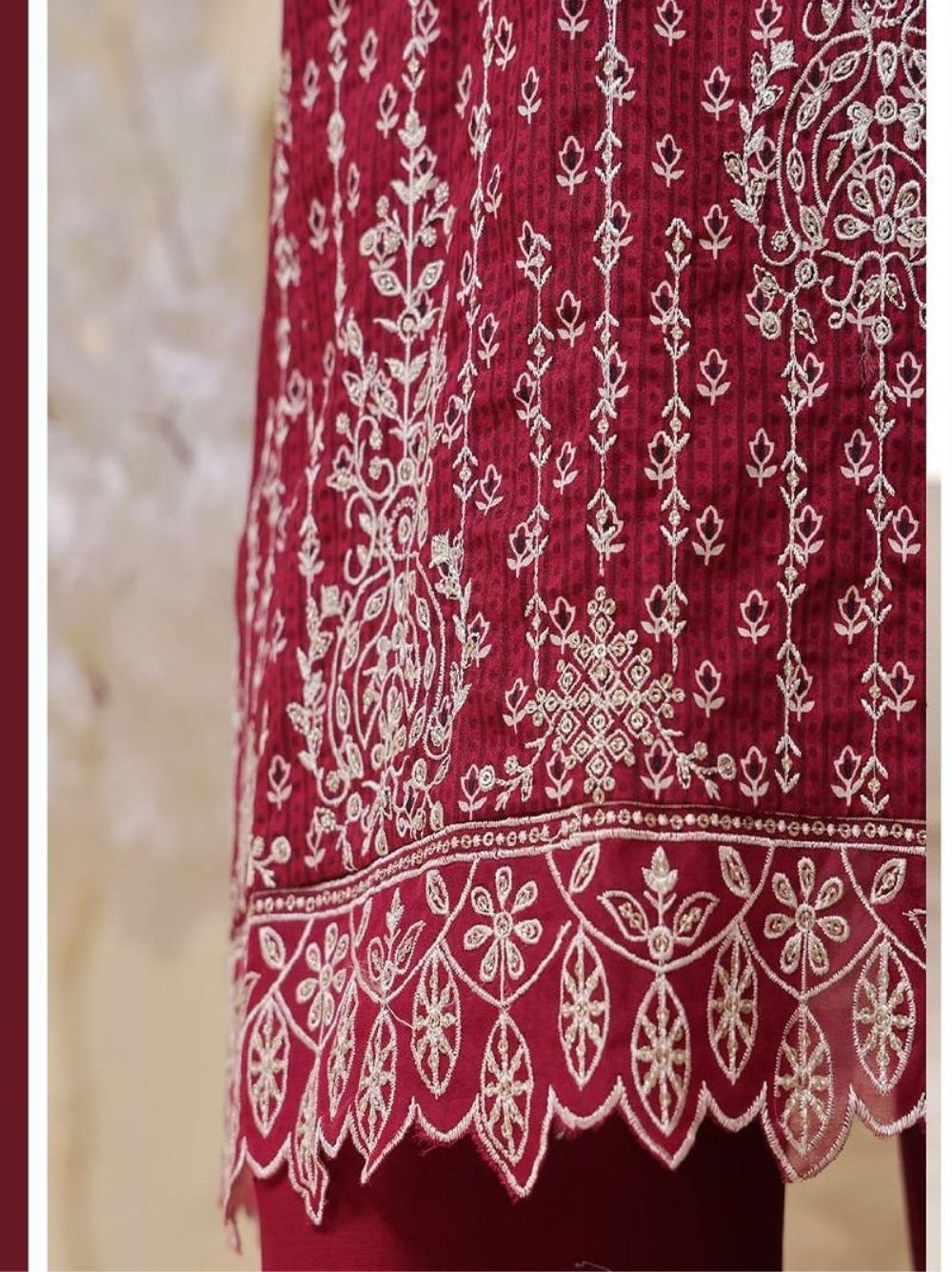 Radiate elegance in this maroon embroidered lawn stitched suit, paired with a graceful lawn dupatta and plain trousers. Perfect for a bold, stylish look! ❤️