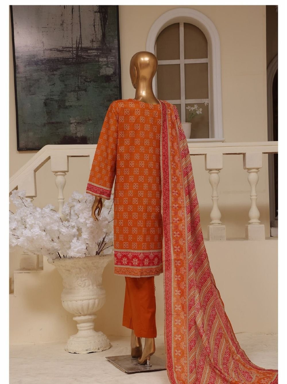 Glow in this rust orange embroidered lawn stitched suit, paired with a chic lawn dupatta and plain trousers. A perfect blend of vibrant and stylish! 🍊