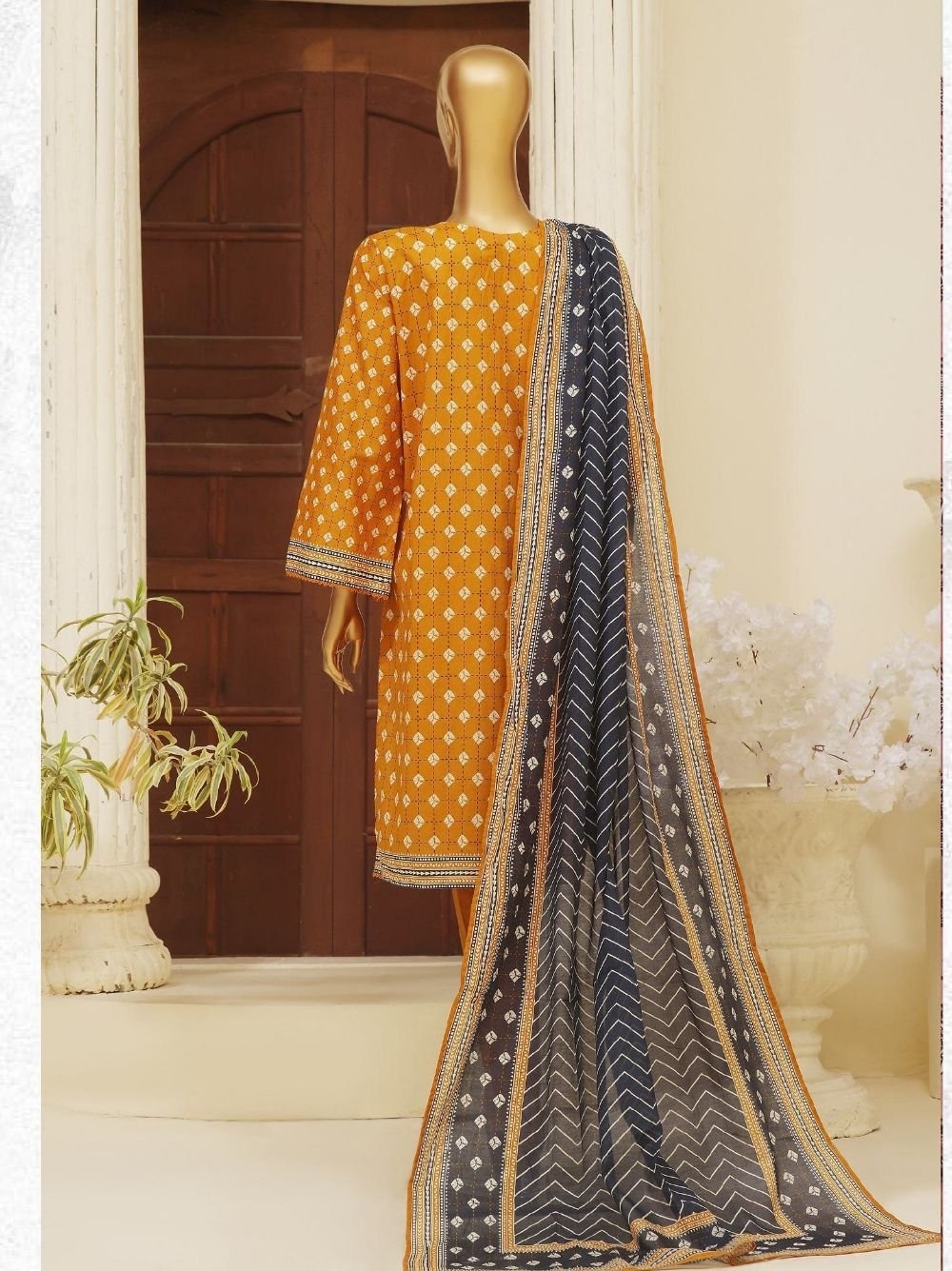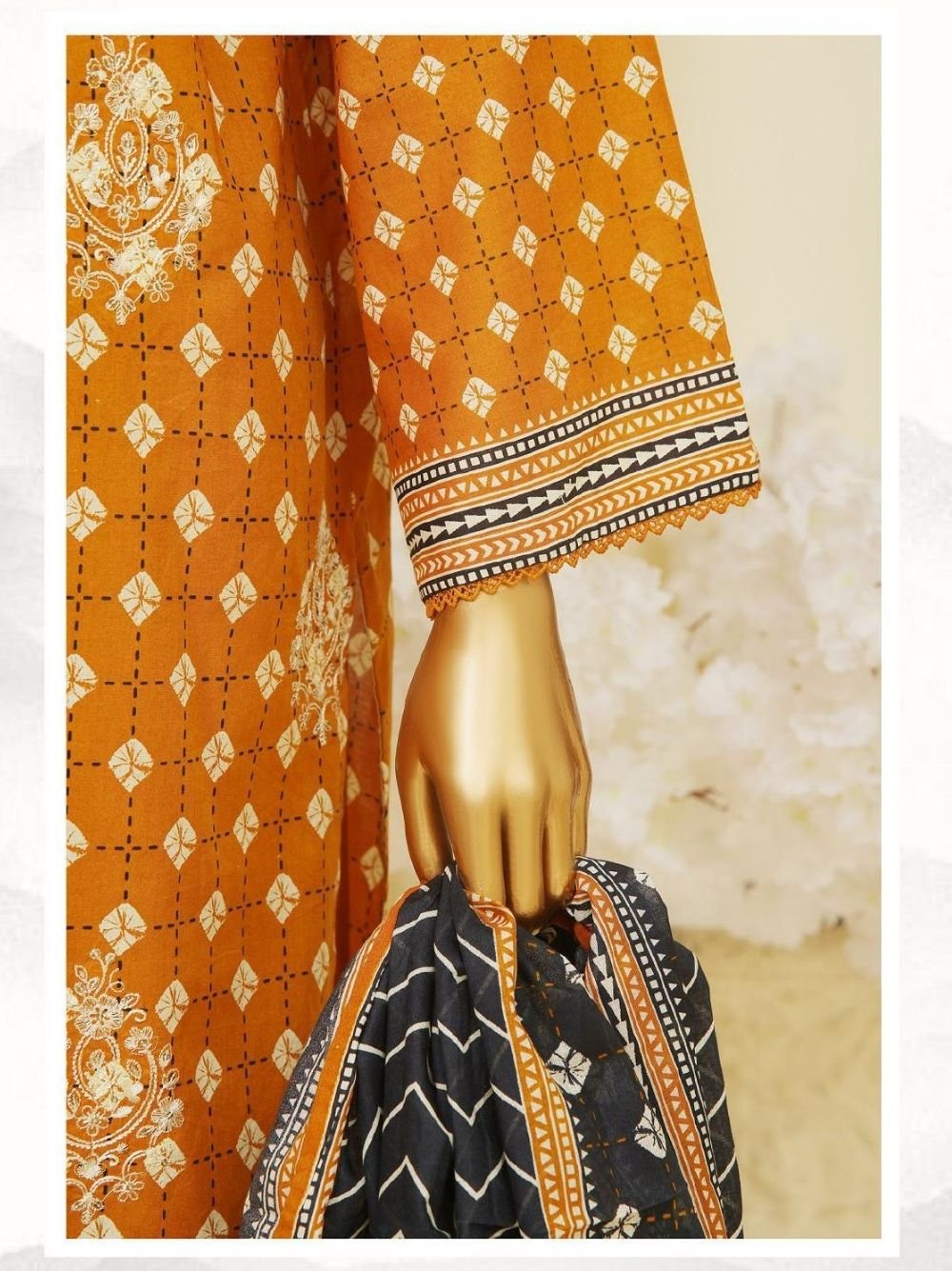 Shine bright in this honey orange embroidered lawn stitched suit, paired with a chic lawn dupatta and plain trousers. Perfect for a vibrant, stylish look! 🍯